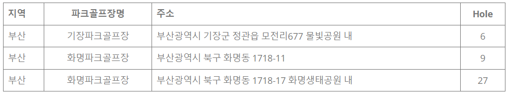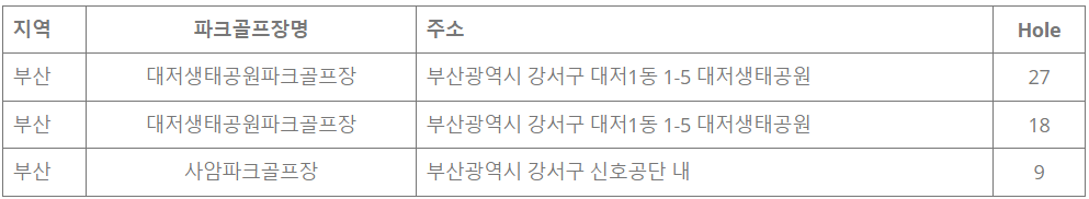 각 구별 파크골프장 현황